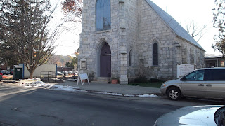 Lee, Massachusetts, the kissin' cousin of Lenox, MA, has some wonderful old architecture, much of it ecclesiastical. Here is an old church building (18th century) transformed into a theater: